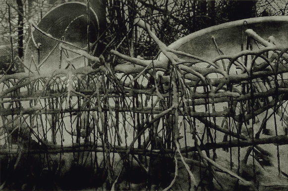 zonder titel (tuin bij het atelier II) , mezzotint, 140 x 100 cm, 1998 papier op katoen. Terug naar overzicht mezzotints Bert Keller