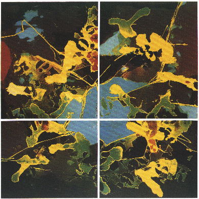 Virus-Rouge-Jaune-Bleu, etching on paper 100x100cm 1994