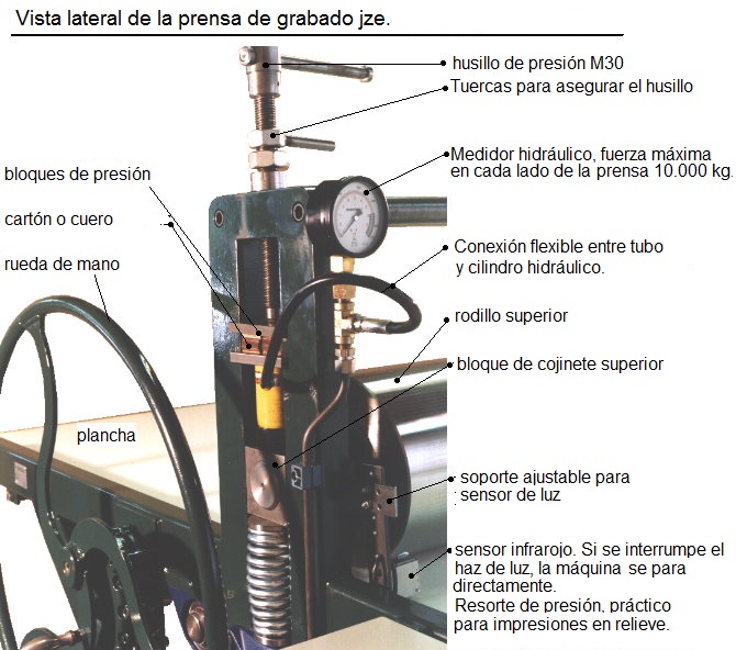 Esta imagen muestra la conexión de la manguera entre el cilindro hidráulico y el manómetro y la tubería. La conexión de la manguera debe ser flexible porque el rodillo superior de la prensa debe moverse verticalmente.