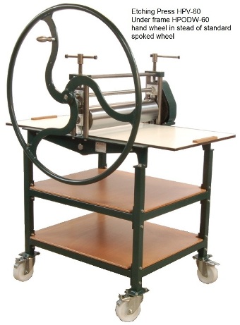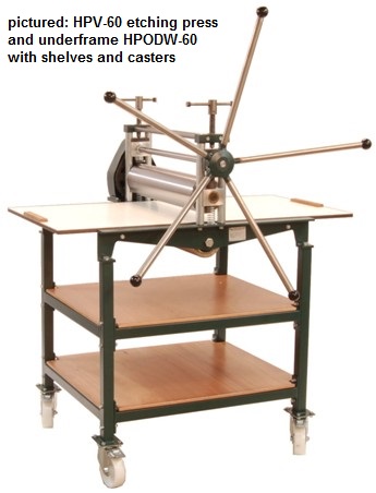 Presse de gravure HPV-80 avec table support et deux étagères et roulettes HPODW-80. Cliquez pour agrandir l'image |