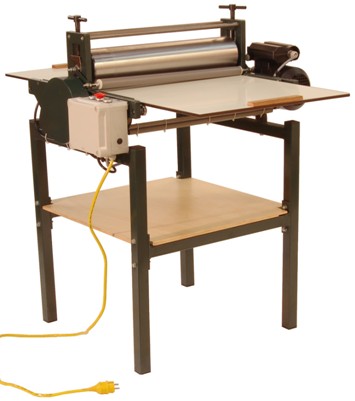 Comme la presse de gravure JSV-60 (voir ci-dessus) la presse électrique JSVE-80 peut également être muni d'un support sur roulettes; le JSOW-80 Cliquez ici pour agrandir l'image |