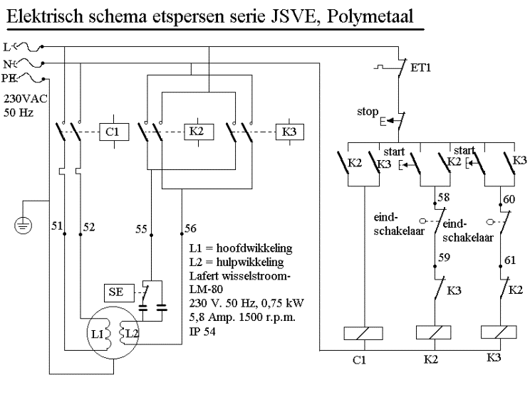 - un entraînement avec un moteur électrique, 230 Volt, 0,75 kW.
